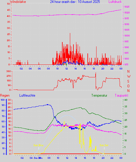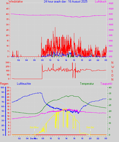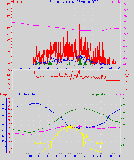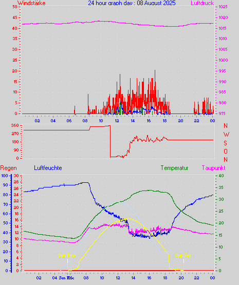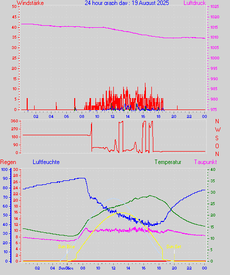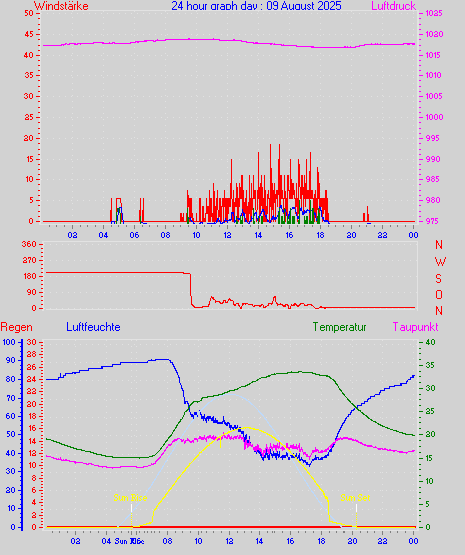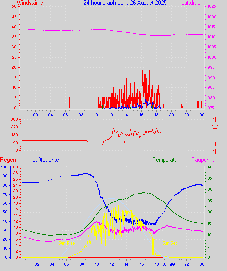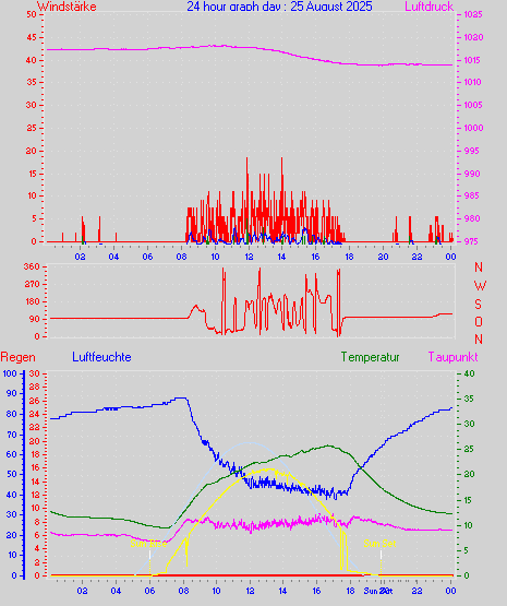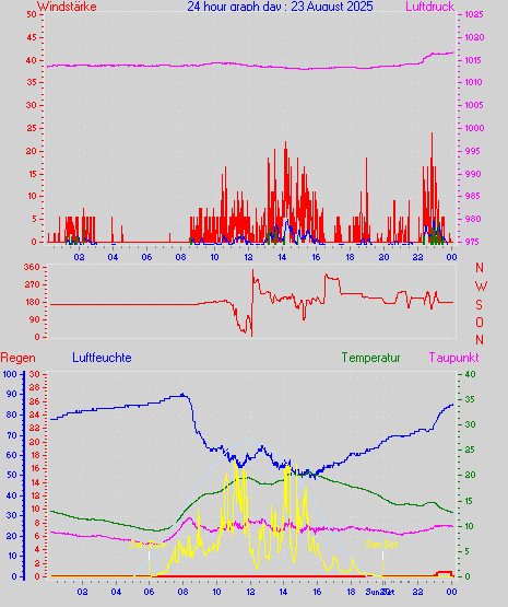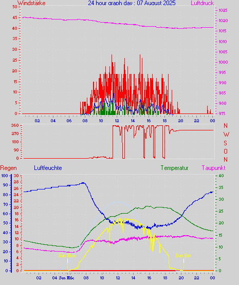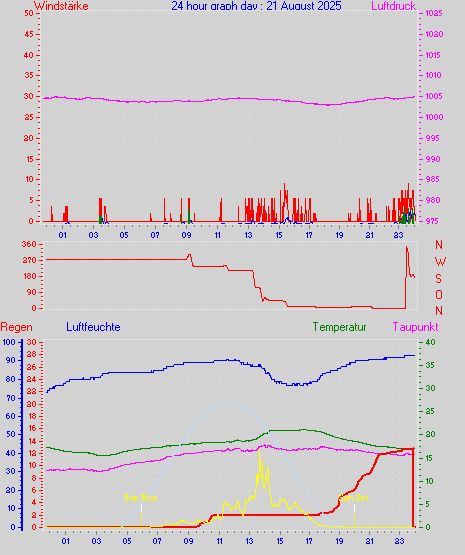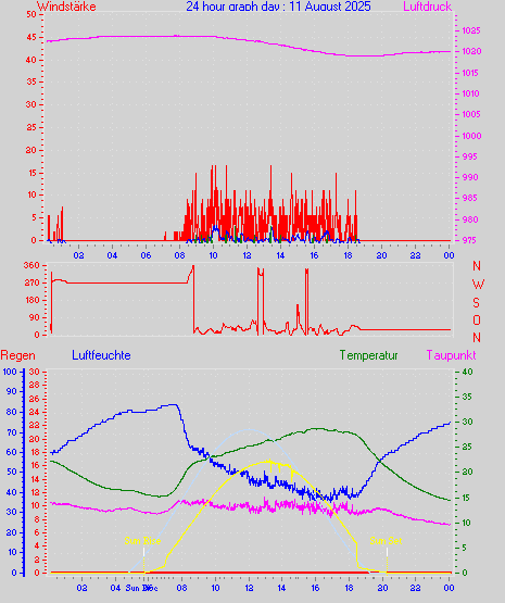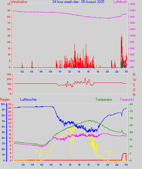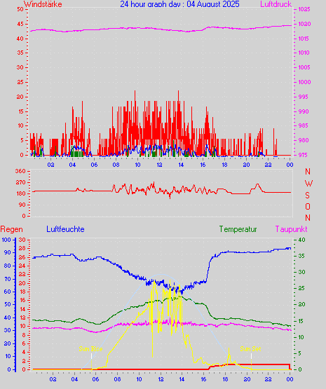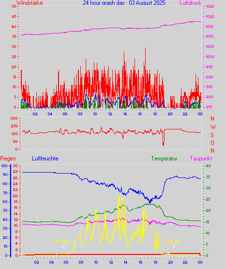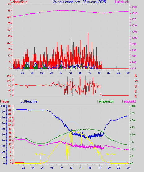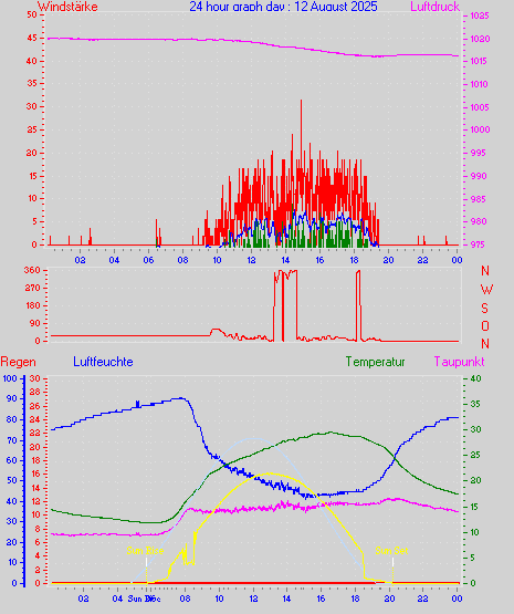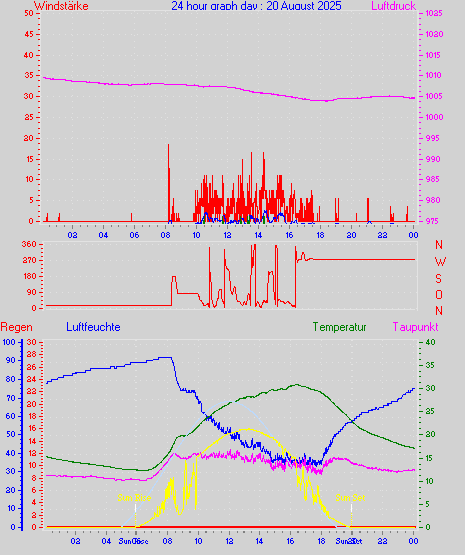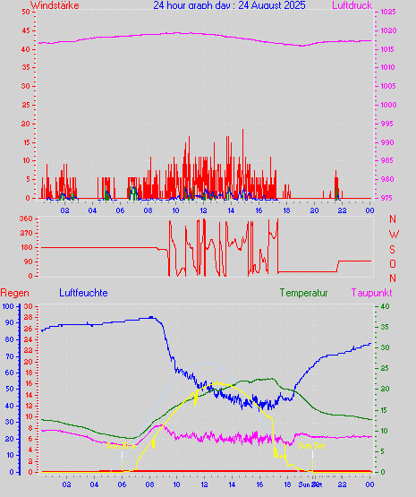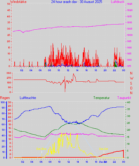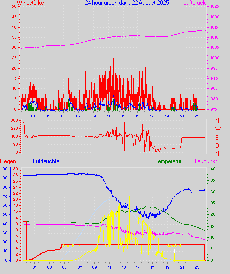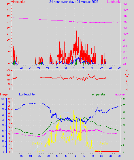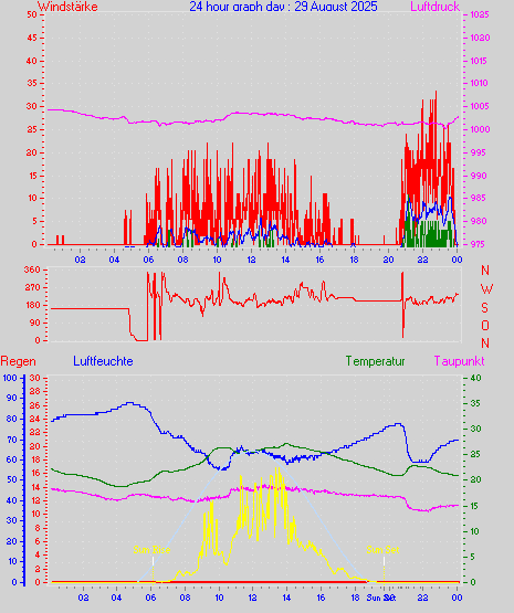 Höchstes Windmittel = 16.7 kmh aus 203°(SSW) tag 29 zeit 22:00