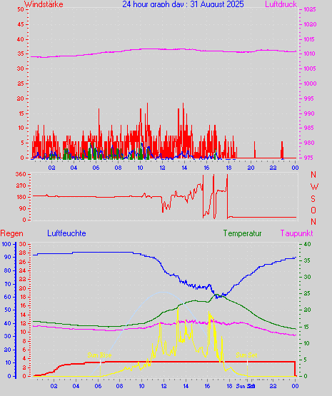 Höchstes Windspitze = 16.7 km/h aus 203°(SSW) tag 31 zeit 10:00