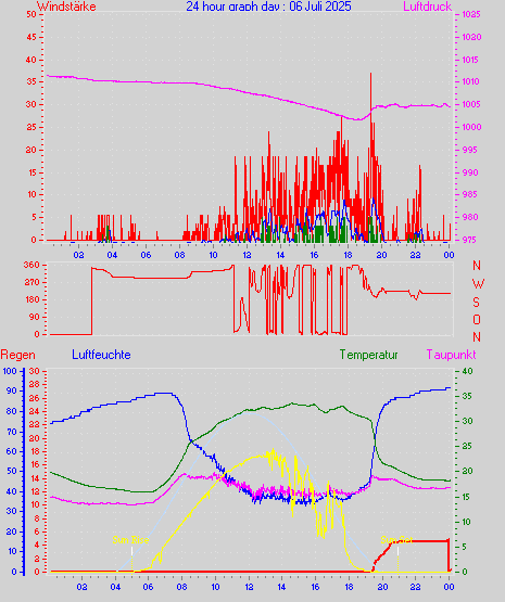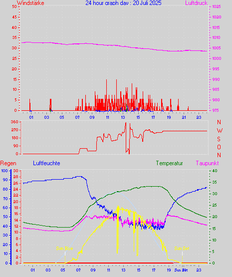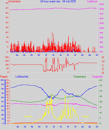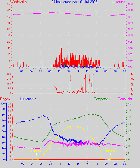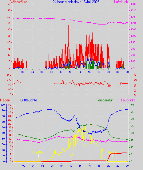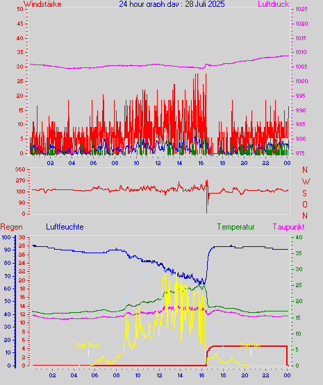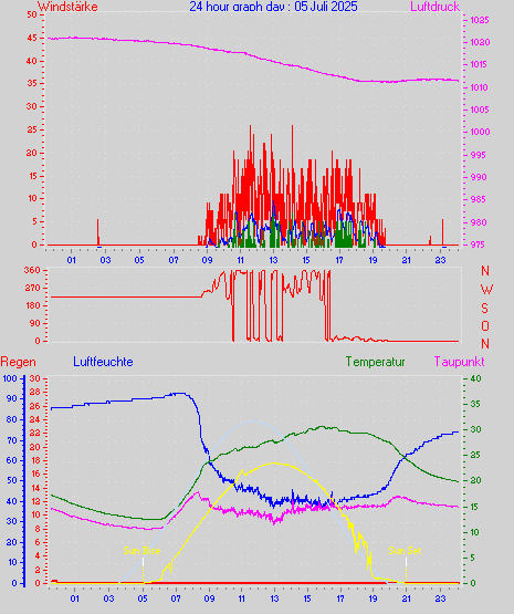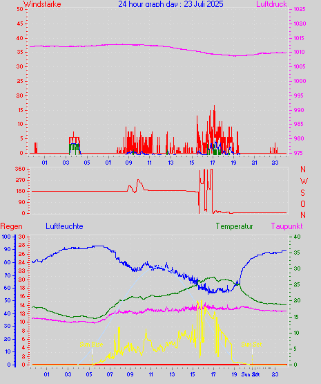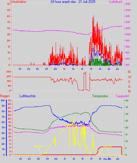 Höchstes Windmittel = 16.7 kmh aus 203°(SSW) tag 21 zeit 18:00