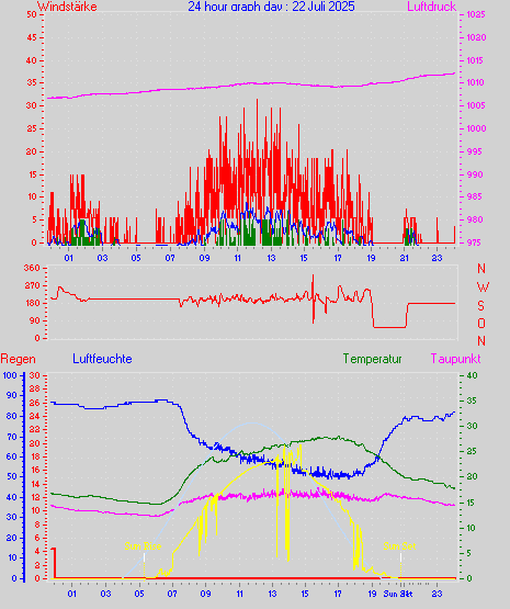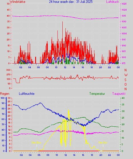 Höchstes Windspitze = 22.2 km/h aus 225°( SW) tag 31 zeit 09:00