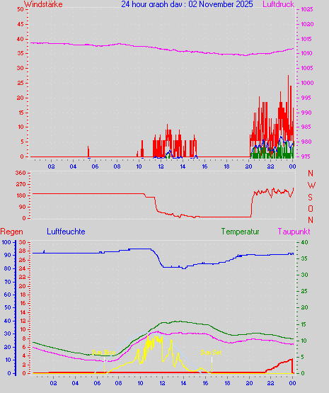 Höchstes Windspitze = 24.1 km/h aus 225°( SW) tag 02 zeit 23:05