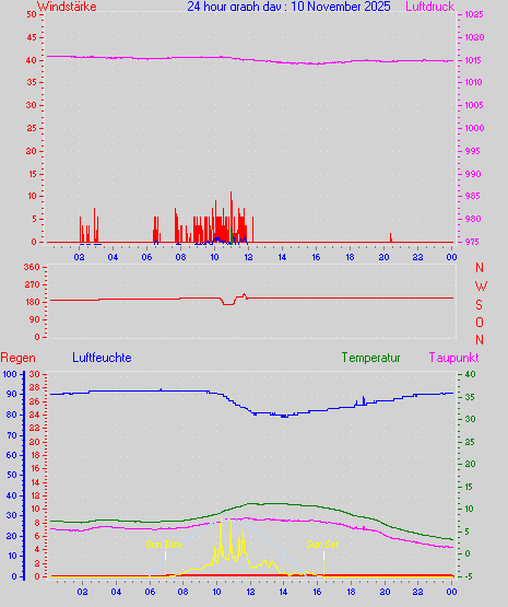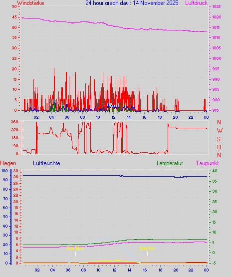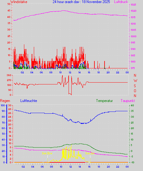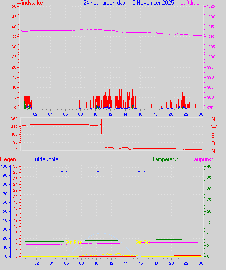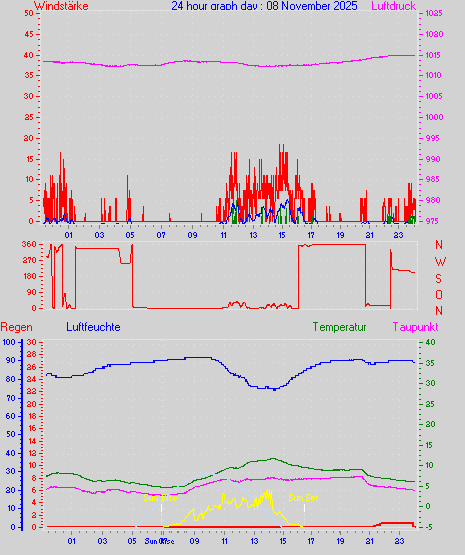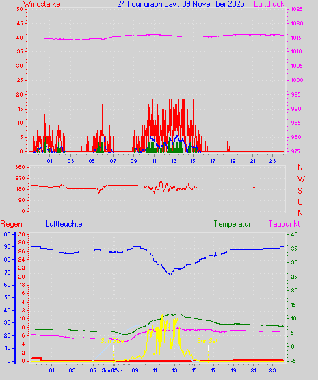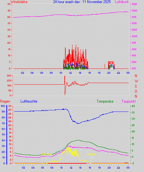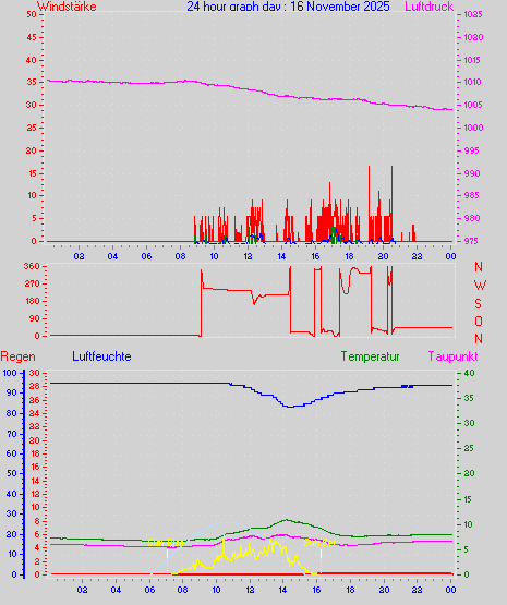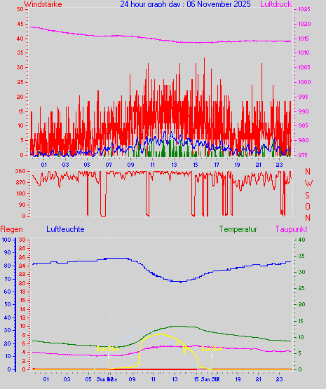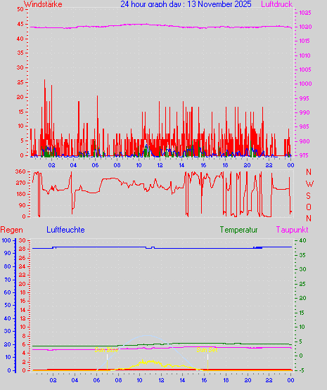 Höchstes Windmittel = 13.0 kmh aus 203°(SSW) tag 06 zeit 16:03