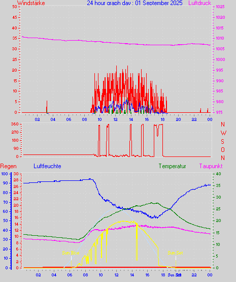 Höchstes Windspitze = 18.5 km/h aus 360°( N ) tag 01 zeit 14:01