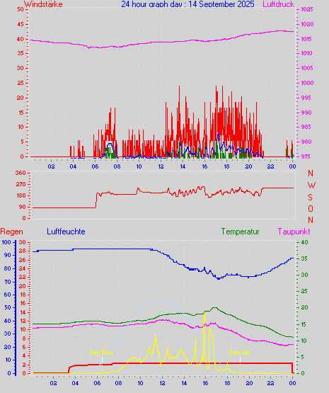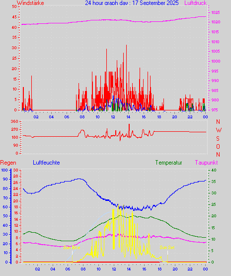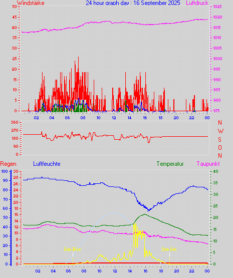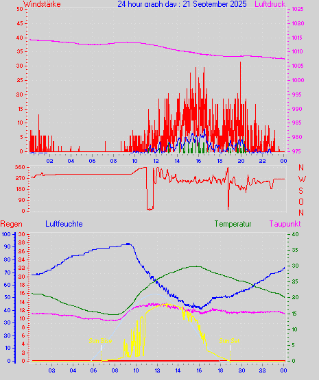Höchstes Windmittel = 16.7 kmh aus 248°(WSW) tag 21 zeit 16:03