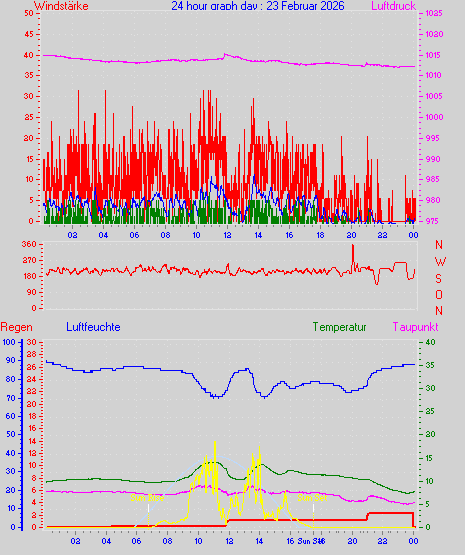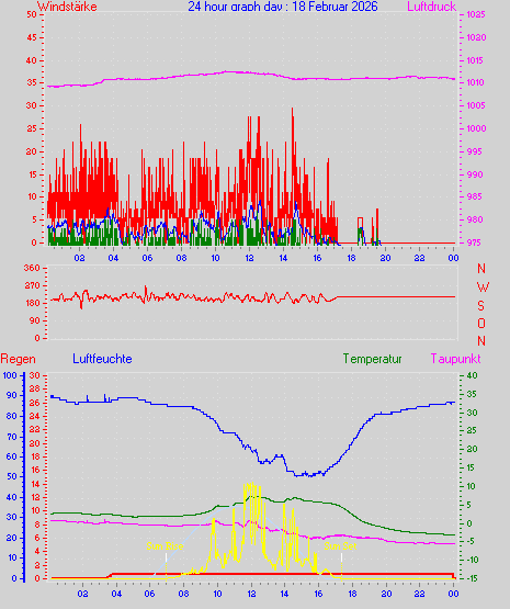 Höchstes Windmittel = 18.5 kmh aus 225°( SW) tag 13 zeit 11:04
